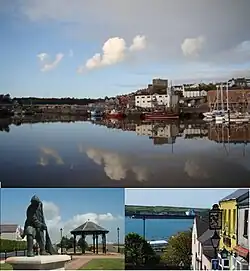 ![]() Clockwise from top: Milford Haven Docks from Hakin; Haven from town; the Tribute to Fishermen on The Rath. | |