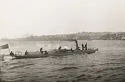 Prior to federation each self-governing colony had operated its own naval force. These navies were small and lacked blue water capabilities, forcing the separate colonies to subsidise the cost of a British naval squadron in their waters for decades. The colonies maintained control over their respective navies until 1 March 1901, when the Commonwealth Naval Force was created. This new force also lacked blue water capable ships, and ultimately did not lead to a change in Australian naval policy. In 1907 Prime Minister Alfred Deakin and Creswell, while attending the Imperial Conference in London, sought the British Government's agreement to end the subsidy system and develop an Australian navy. The Admiralty rejected and resented the challenge, but suggested diplomatically that a small fleet of destroyers and submarines would be sufficient. Deakin was unimpressed, and in 1908 invited the American Great White Fleet to visit Australia. This visit fired public enthusiasm for a modern navy and in part led to the order of two 700-ton River-class destroyers.[59] The surge in German naval construction prompted the Admiralty to change their position however and the Royal Australian Navy was subsequently formed in 1911, absorbing the Commonwealth Naval Force.[60] On 4 October 1913, the new fleet steamed through Sydney Heads, consisting of the battlecruiser HMAS Australia, three light cruisers, and three destroyers, while several other ships were still under construction. And as a consequence the navy entered the First World War as a formidable force.[59]