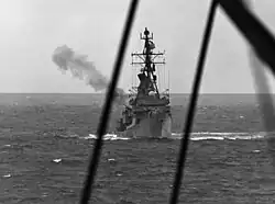 In October 1927, HMAS Adelaide was called to the British Solomon Islands Protectorate as part of a punitive expedition in response to the killing of a district officer and sixteen others by Kwaio natives at Sinalagu on the island of Malaita on 3 October, known as the Malaita massacre. Arriving at Tulagi on 14 October, the ship proceeded to Malaita to protect the landing of three platoons of troops, then remained in the area to provide personnel support for the soldiers as they searched for the killers. The ship's personnel took no part in operations ashore, providing only logistic and communications support. Adelaide returned to Australia on 23 November.[110][111]