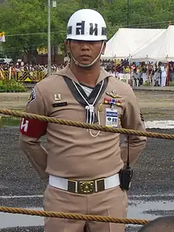 They are authorised to enforce military law and conduct crime investigations involving active members of the TNI. Other than conducting law enforcement, MPs which are attached to the Paspampres also conduct escort and Honour guard duties for the head of state, high-ranking military officials, and VVIPs.[13] The Military police are also responsible in supervising prisoners of war (POWs), controlling military prisoners, arresting deserters, managing military traffic, issuing military driving licenses and conduct joint law enforcement operations with the civilian police such as implementing traffic checkpoints[14] and crime investigation to take action towards military personnel caught red-handed in violations.[15][16]