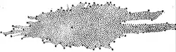 The shape of the Milky Way as deduced from star counts by William Herschel in 1785. The Solar System was assumed to be near the center