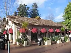 The 1980s and 1990s saw the decline of small businesses in Mill Valley. Local establishments like Lockwood's Pharmacy closed in 1981 after running almost continuously for 86 years. Old Mill Tavern, O'Leary's, and the Unknown Museum shut their doors, as did Red Cart Market and Tamalpais Hardware. In their places came boutiques, upscale clothing stores, coffee shops, art galleries, and gourmet grocery stores. Downtown Plaza and Lytton Square were remodeled to fit the new attitude. The population in the city alone swelled over 13,000 and many of the old, narrow, winding streets grew clogged with traffic congestion.[38] The Public Library expanded with a new Children's Room, a downstairs Fiction Room, and Internet computers.[42] It also joined MARINet, a consortium of all the public libraries in Marin, to allow patrons greater access to information. MARINet now has an online catalogue of all the materials, both physical and electronic, in the Marin public libraries, which patrons can order, pick up, and drop off materials at any of the participating libraries.[43] The Old Mill also got a facelift; it was rebuilt to the same specifications as the original in 1991. The 1990s also saw another influx of affluence. Many new homeowners gutted homes built in the 19th and early 20th centuries or tore them down altogether.