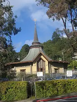 By 1900, the population was nearing 900 and the locals pushed out the Tamalpais Land & Water Co. in favor of incorporation. Organizations and clubs cropped up including the Outdoor Art Club (1902) (organized by Laura Lyon White),[31][32] Masonic Lodge (1903)[33] which celebrated its centennial in 2003[34] and the Dipsea Race (1905), the latter marking its 100th anniversary in 2010.[35] The second big population boom came after the 1906 Great earthquake. While much of San Francisco and Marin County was devastated, many fled to Mill Valley and most never left. In that year alone the population grew to over 1,000 permanent residents.[36] Creeks were bridged over or dammed, more roads laid down and oiled, and cement sidewalks poured. Tamalpais High School opened in 1908, the first city hall was erected in 1908, and Andrew Carnegie's library in 1910. The Post Office opened under the name "Eastland", however after many objections it was changed to "Mill Valley" in 1904.[17] The very first Mountain Play was performed at the Mountain Theater on Mt. Tam in 1913.[37]