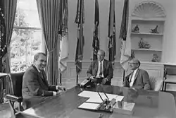 Friedman served as an unofficial adviser to Ronald Reagan during his 1980 presidential campaign, and then served on the President's Economic Policy Advisory Board for the rest of the Reagan Administration. Ebenstein says Friedman was "the 'guru' of the Reagan administration".[21] In 1988, he received the National Medal of Science and Reagan honored him with the Presidential Medal of Freedom.[88]