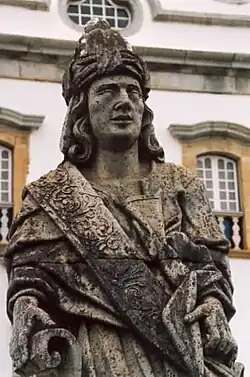 The first European expedition into Minas Gerais' territory was led by Spaniards Francisco Bruza Espinosa and Juan de Azpilcueta Navarro between 1553 and 1555, which left the coast of Bahia and traveled through northern Minas Gerais. In the following decades, other expeditions known as "entries", coming from the Brazil's northeastern coast, traveled through this same region, such as that of Sebastião Fernandes Tourinho in 1573.[21][22] From the end of the 16th century, bandeirantes traveled the territory of Minas Gerais in search of gold and precious stones. Many of their expeditions were supported by the Portuguese Crown, among which those of Fernão Dias and his son-in-law Borba Gato, who left the village of São Paulo in 1674, stand out.[23] In the 17th century, the colonization of northern Minas Gerais began, with the settlement of cattle herders, due to the expansion of livestock farming in the northeastern Sertão, and of bandeirantes, in search of precious stones and indigenous people to enslave.[24]