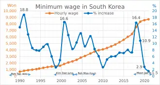 - ^ "President Moon Jae-in apologizes for failing to keep the promise of a minimum wage of 10,000 won". Kyunghyang Newspaper. 2019. Retrieved 14 July 2019.