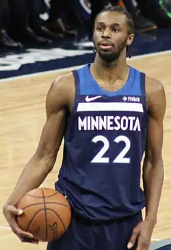 On February 6, 2020, The Timberwolves traded Andrew Wiggins to the Golden State Warriors for Karl-Anthony Towns' longtime friend D'Angelo Russell. At the season's end the Timberwolves got the 1st pick in the 2020 NBA draft.[102] With that pick, the team drafted Anthony Edwards out of Georgia.[103] In that same draft, they would trade up to select Jaden McDaniels with the 28th pick.[104]