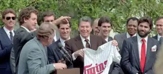 President Ronald Reagan congratulates the Twins winning the 1987 World Series