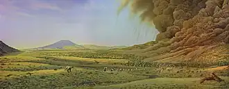 The Miocene (/ˈm.əsn, --/ MY-ə-seen, -⁠oh-)[6][7] is the first geological epoch of the Neogene Period and extends from about 23.04 to 5.333 million years ago (Ma). The Miocene was named by Scottish geologist Charles Lyell and comes from Ancient Greek μείων (meíōn), meaning "less", and καινός (kainós), meaning "new, recent",[8][9] and thus, means "less recent", because it has 18% fewer modern marine invertebrates than the Pliocene has.[10] The Miocene followed the Oligocene and preceded the Pliocene.