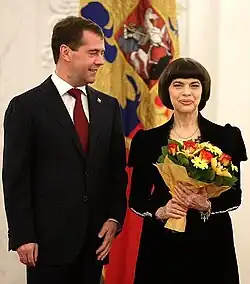 In November 2010, she was awarded the Russian Medal of Friendship by President Dmitry Medvedev at a state dinner. She was in Russia and the Baltic States throughout November, returning to Paris after a concert in Warsaw, Poland, on 28 November. In January 2011, Mireille was promoted from Chevalier (9 December 1999) to Officier of the Légion d'honneur.[30]