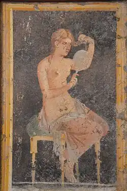 By the Bronze Age most cultures were using mirrors made from polished discs of bronze, copper, silver, or other metals.[6][9] The people of Kerma in Nubia were skilled in the manufacturing of mirrors. Remains of their bronze kilns have been found within the temple of Kerma.[10] In China, bronze mirrors were manufactured from around 2000 BC,[11] some of the earliest bronze and copper examples being produced by the Qijia culture. Such metal mirrors remained the norm through to Greco-Roman Antiquity and throughout the Middle Ages in Europe.[12] During the Roman Empire silver mirrors were in wide use by servants.[13]