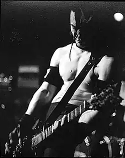 The Misfits were formed in 1977 in Lodi, New Jersey, by Glenn Danzig, who had previous experience performing in local cover bands.[5] The band was named after actress Marilyn Monroe's final film, The Misfits (1961). Danzig's first recruit to the Misfits was drummer Mr. Jim and bassist Diane DiPiazza, however, DiPiazza never showed up. Mr. Jim was replaced by Manny Martinez shortly after. The two practiced in Martínez's garage, with Danzig on electric piano and Martínez on drums. The duo soon encountered Jerry Caiafa, who was dating a neighbor of Martínez's and had just received a bass guitar for Christmas.[6] Although he was still new to the instrument, he joined the band; Caiafa and Danzig would remain the only consistent members of the Misfits until the group's dissolution in 1983.[6][7]