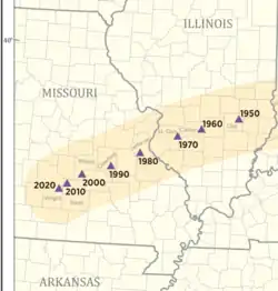 74. ^ "QuickFacts Missouri; UNITED STATES". 2019 Population Estimates. United States Census Bureau, Population Division. February 6, 2019. Archived from the original on January 3, 2020. Retrieved February 6, 2019.
