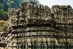 A unique discovery at Vangchhia is the Pipute Lamlian (transl. grandparents' big path), also known as the "Ancestors' Pathway," a footpath that traverses the site and branches out in three directions—north, south, and east. The path is lined with rocks engraved with images of sial heads, flowers, and human figures, reminiscent of carvings found at Kawtchhuah Ropui.[41] This suggests that the region's ancient societies developed their own unique cultural practices, separate from other civilisations, with trade connections extending across the region, including Bangladesh, Mainland India, and Myanmar.[42]
