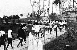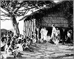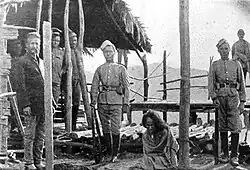 The annexation of the Lushai Hills sparked resistance from the chiefs across separate periods between 1890 and 1895. A western Lushai Rising was led by Kalkhama in 1890.[65] An Eastern Lushai Rising was led by Lalburha in 1892.[66] The southern chiefs such as Ropuiliani and Zakapa were also subdued.[67] The Zahau chief Nikuala was also captured and imprisoned by the British.[68] Other chiefs opted for cooperation such as chieftainess Darbilhi who helped set up Fort Tregear.[69] Soon after the Lushai Rising, Dâra became the first non-noble person to be made a chief by the British. He was given control of Pukpui as a reward for his service in the Lushai Rising by Captain Shakespear's side.[70]