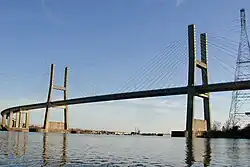 Alabama's only deep-water port, Mobile is located on the Mobile River at the head of Mobile Bay on the north-central Gulf Coast.[11] The Port of Mobile has always played a key role in the economic health of the city, beginning with the settlement as an important trading center between the French colonists and Native Americans, and now to its current role as the 12th-largest port in the United States.[12][13] During the American Civil War, the city surrendered to Federal forces on April 12, 1865,[14] after Union victories at two forts protecting the city.