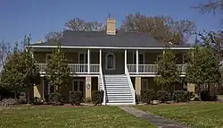 In 1702, French colonists founded the Old Mobile Site south of existing Native American villages on the Mobile River. The Fort Louis de la Louisiane was built on a bluff that today is 27 miles (43 km) upriver from the Mobile River's mouth. The original town of Mobile was built on lower ground just downriver from the fort.[21] French Canadian brothers Pierre Le Moyne d'Iberville and Jean-Baptiste Le Moyne, Sieur de Bienville founded the site to establish control over France's claims to La Louisiane. From 1702 to 1711, it was the French colonial capital.[23] Mobile's Roman Catholic parish was established on July 20, 1703, by Jean-Baptiste de la Croix de Chevrières de Saint-Vallier, Bishop of Quebec, and was the first French Catholic parish established on the Gulf Coast.[24] In 1704, the ship Pélican delivered 23 Frenchwomen to the colony, but passengers had contracted yellow fever at a stop in Havana; though most recovered, many colonists and neighboring Native Americans contracted the disease and died. African slaves were transported to Mobile on a supply ship from the French colony of Saint-Domingue in the Caribbean.[25]