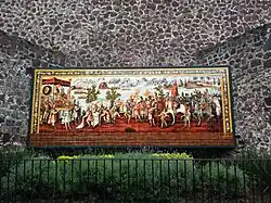 Another construction was the Chapultepec aqueduct, built in 1506 to bring fresh water directly from Chapultepec to Tenochtitlan and Tlatelolco.[24] This water was driven to the merchant ports of the city for people to drink and to the temples.[48] This aqueduct was destroyed less than a year after Moctezuma's death, during the Siege of Tenochtitlan in 1521, as the Spaniards decided to destroy it to cut Tenochtitlan's water supply. Some Mexica warriors attempted to resist its destruction, but were repelled by the Tlaxcalan allies of the Spanish.[49]