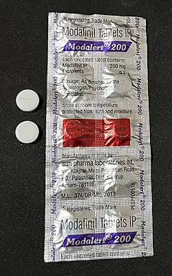 Modafinil is commercially available in 100 mg and 200 mg oral tablet forms.[7] Additionally, it is offered as the (R)-enantiomer, known as armodafinil, and as a prodrug named adrafinil.[102]