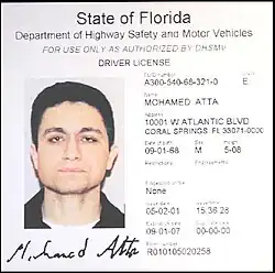 Mohamed Atta's Florida driver's license, which he received on 2 May 2001