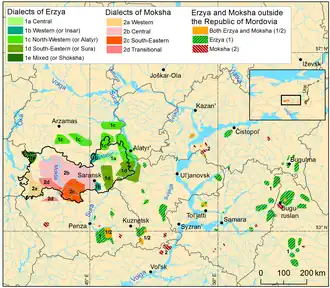 The Moksha language is divided into three dialects: