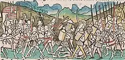 The Franciscan Friar William of Rubruck, who visited the court of the Great Khan in the 1250s, listed "the Blac",[23] or Vlachs, among the peoples who paid tribute to the Mongols, but the Vlachs' territory is uncertain.[24][25] Friar William described "Blakia" as "Assan's territory"[26] south of the Lower Danube, showing that he identified it with the northern regions of the Second Bulgarian Empire.[27] Later in the 14th century, King Charles I of Hungary attempted to expand his realm and the influence of the Catholic Church eastwards after the fall of Cuman rule, and ordered a campaign under the command of Phynta de Mende (1324). In 1342 and 1345, the Hungarians were victorious in a battle against Tatar-Mongols; the conflict was resolved by the death of Jani Beg, in 1357. The Polish chronicler Jan Długosz mentioned Moldavians (under the name Wallachians) as having joined a military expedition in 1342, under King Władysław I, against the Margraviate of Brandenburg.[28]