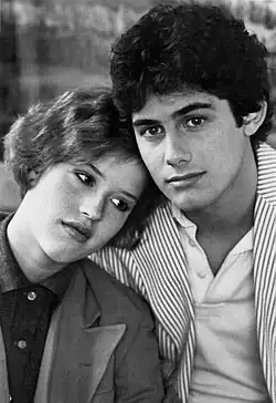 Ringwald rose to prominence with her breakout role in Sixteen Candles (1984). She was cast as Samantha Baker, a girl whose sixteenth birthday is forgotten by her family. Ringwald's performance gained critical acclaim; many called her acting engaging.[14] Ringwald later said, "It is not a good idea to do remakes of great classic films" when asked if there would be a remake to Sixteen Candles.[15] Ringwald was regarded as a member of the Brat Pack of 1980s teen actors[16] but has said she was not really part of that group.[17] Ringwald gained more success when she was cast in another John Hughes film, The Breakfast Club (1985), which was a commercial and critical success. Ringwald was cast as Claire Standish, a spoiled, wealthy beauty who is in detention for skipping class to go to the mall. Ringwald's performance gained strong reviews.