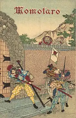 Momotarō (桃太郎; Japanese pronunciation: [mo.moꜜ.ta.ɾoː],[1][2] lit. 'Peach Boy') is a popular hero of Japanese folklore. His name is often translated as Peach Boy, but is directly translated as Peach + Tarō, a common Japanese given name. Momotarō is also the title of various books, films and other works that portray the tale of this hero.