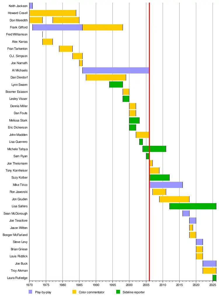 - ^ Lott, Thomas (March 9, 2018). "Joe Tessitore reportedly will be named new voice of MNF". sportingnews.com. Retrieved May 8, 2018.