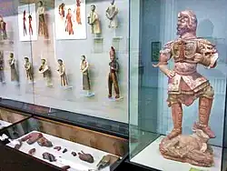 Horse-riding nomadism has been documented by archeological evidence in Mongolia during the Copper and Bronze Age Afanasevo culture (3500–2500 BC);[23] this Indo-European culture was active to the Khangai Mountains in Central Mongolia. The wheeled vehicles found in the burials of the Afanasevans have been dated to before 2200 BC.[24] Pastoral nomadism and metalworking became more developed with the later Okunev culture (2nd millennium BC), Andronovo culture (2300–1000 BC) and Karasuk culture (1500–300 BC), culminating with the Iron Age Xiongnu Empire in 209 BC. Monuments of the pre-Xiongnu Bronze Age include deer stones, keregsur kurgans, square slab tombs, and rock paintings.