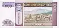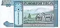 | 500 tögrög (tavan zuun) | 145 × 70 mm | Green | Genghis Khan, Soyombo, Paiza | Mongolian yurts in motion | 1993, 1997, 2003, 2007, 2011, 2013 20003, 20034, 2013, 2016, 2020 |