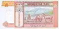 | 5 tögrög (tavan) | 120 × 60 mm | Orange | Sükhbaatar, Soyombo, Paiza | Mountainous landscape and horses eating grass | |||||