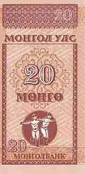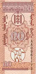 20 möngö | Yellow-brown | Soyombo, Wrestling | Wrestling | ||||