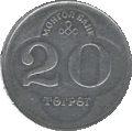 [10] | 20 tögrög | 17.5 mm | 1.5 mm | 0.78 g | Aluminium | Plain | Value | Soyombo | 1994 |