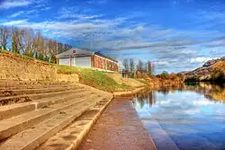 The battle to save Magor Marsh, the last remaining area of natural fenland on the Gwent Levels, led to the foundation of the Gwent Wildlife Trust.[112] The county contains a range of nature reserves and areas of special scientific interest, including Graig Wood 14.3-hectare (35-acre) SSSI, Pentwyn Farm Grasslands 7.6-hectare (19-acre) SSSI and Lady Park Wood National Nature Reserve (45.0-hectare (111-acre)).[113] Llandegfedd Reservoir, developed in the 1960s to provide a water supply to Cardiff, is an SSSI providing overwintering for wildfowl.[114] The Wye Valley, the county's only National Landscape, has its largest population of deer and the UK's largest population of lesser horseshoe bats.[115] The Wye itself was once one of the country's major centres of salmon fishing, but this has suffered very rapid decline in the 21st century due to river pollution.[116][l]