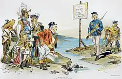 Australia's foreign policy position of opposing threatening powers in the Pacific Islands in the early 1900s has been described by Otto von Bismarck, Alfred Deakin, Billy Hughes, and several historians as the "Australasian Monroe Doctrine", "Australian Monroe Doctrine", or the "Pacific Monroe Doctrine".[85][86][87]