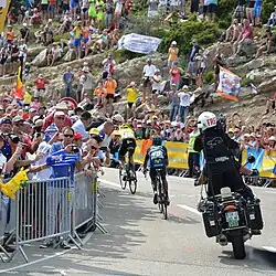 Mont Ventoux is the scene of one of the most grueling climbs in the Tour de France bicycle race, which has ascended the mountain eighteen times since 1951.[14][15] The followed trail mostly passes through Bédoin. Its fame as a scene of great Tour dramas has made it a magnet for cyclists around the world.