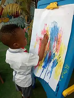 Montessori education involves free activity within a "prepared environment", meaning an educational environment tailored to basic human characteristics, to the specific characteristics of children at different ages, and to the individual personalities of each child.[26] The function of the environment is to help and allow the child to develop independence in all areas according to their inner psychological directives. In addition to offering access to the Montessori materials appropriate to the age of the children, the environment should exhibit the following characteristics:[27][25]
