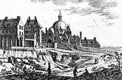 The abbey was destroyed in 1790 during the French Revolution, and the convent demolished to make place for gypsum mines. The last abbess, Marie-Louise de Laval-Montmorency, was guillotined in 1794.[15] The church of Saint-Pierre was saved. At the place where the chapel of the Martyrs was located (now 11 rue Yvonne-Le Tac), an oratory was built in 1855. It was renovated in 1994.[9]