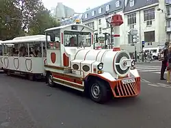 The Montmartre "petit train" doing its rounds near the Moulin Rouge cabaret