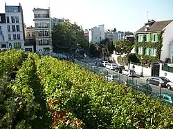 There is a small vineyard in the Rue Saint-Vincent, which continues the tradition of wine production in the Île de France, and a wild garden, occupied by midwife toads, also in the Rue Saint-Vincent.[25][26] The vineyard yields about 500 litres (110 imp gal; 130 US gal) of wine per year.[27]
