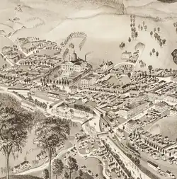 By 1858, the layout of the main streets paralleling the rivers was in place. The downtown street pattern has changed little since that time.[19]