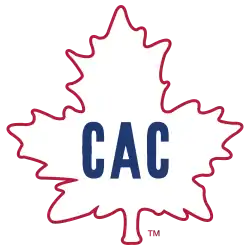 The Canadiens used multiple designs prior to adopting the aforementioned design in 1914. The original shirt of the 1909–10 season was blue with a white C. The second season had a red shirt featuring a green maple leaf with the C logo, and green pants. Lastly, the season before adopting the current look the Canadiens wore a "barber pole" design jersey with red, white and blue stripes, and the logo being a white maple leaf reading "CAC", "Club athlétique Canadien".[62] All three designs were worn during the 2009–10 season as part of the Canadiens' centenary.[64]