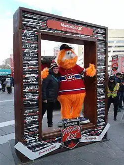 Beginning in the 2004–05 season, the Canadiens adopted Youppi! as their official mascot, the first costumed mascot in their long history. The foregoing was the longtime mascot for Major League Baseball (MLB)'s Montreal Expos but was dropped from the franchise when they moved to Washington, D.C. prior to the 2005 MLB season and became the Washington Nationals.[75] With the changeover, Youppi! became the first mascot in professional sports to switch leagues. He is also the first mascot in professional sports to get ejected from a game dating back to his time with the Expos.[76] In June 2020, Youppi! became the first mascot from a Canadian-based club to be inducted into the Mascot Hall of Fame.[77]