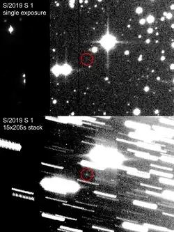 - ^ Ashton, Edward; Gladman, Brett; Beaudoin, Matthew; Alexandersen, Mike; Petit, Jean-Marc (May 2022). "Discovery of the Closest Saturnian Irregular Moon, S/2019 S 1, and Implications for the Direct/Retrograde Satellite Ratio". The Astronomical Journal. 3 (5): 5. Bibcode:2022PSJ.....3..107A. doi:10.3847/PSJ/ac64a2. S2CID 248771843. 107.