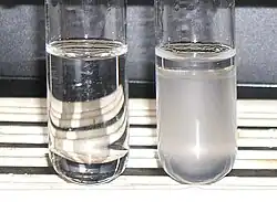 Lucas test: Negative (left) with ethanol and positive with t-butanol.