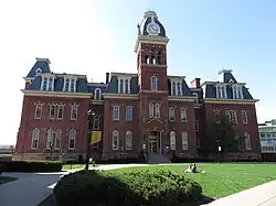 While informal schools existed from Morgantown's earliest days,[13] formal education began in July 1803 with a one-story, coeducational Virginia common school supported by tuition.[14] In 1814, the Virginia General Assembly incorporated Monongalia Academy, the county's first public school and a male-only institution roughly equivalent to a modern high school, funded by mandatory surveyors fees.[15][16] The Academy moved to a new two-story building in 1830 and expanded its curriculum; under Presbyterian minister James Robertson Moore, it reached its peak between 1852 and 1864, enrolling students from 14 states.[17] Parallel developments included the establishment of the Morgantown Female Academy in 1831 (later renamed the Methodist Academy) and the Presbyterian-affiliated Woodburn Female Seminary, both of which closed during the Civil War era, with their assets eventually donated toward the founding of West Virginia University.[18][19]