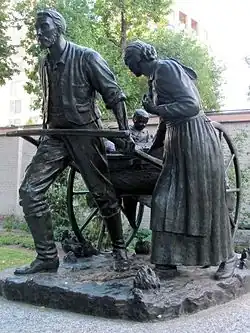 From 1849 to 1852, the Mormons greatly expanded their missionary efforts, establishing several missions in Europe, Latin America, and the South Pacific.[64] Converts were expected to "gather" to Zion, and during Young's presidency (1847–77), over seventy thousand Mormon converts immigrated to America.[64] Many of the converts came from England and Scandinavia and were quickly assimilated into the Mormon community.[65] Many of these immigrants crossed the Great Plains in wagons drawn by oxen, while some later groups pulled their possessions in small handcarts. During the 1860s, newcomers began using the new railroad that was under construction.[66]