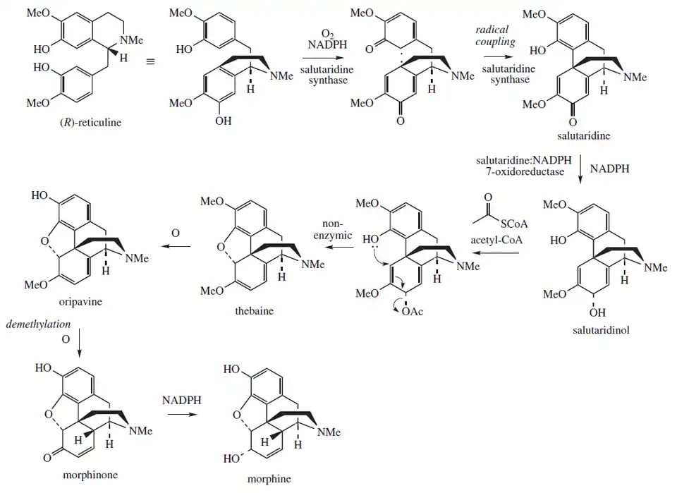 101. ^ Novak B, Hudlicky T, Reed J, Mulzer J, Trauner D (March 2000). "Morphine Synthesis and Biosynthesis-An Update" (PDF). Current Organic Chemistry. 4 (3): 343–362. CiteSeerX 10.1.1.515.9096. doi:10.2174/1385272003376292. Archived (PDF) from the original on 19 June 2012.