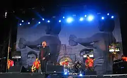 To promote the album, Morrissey embarked on a world tour from April to November.[181] He marked his 45th birthday with a concert at the Manchester Arena, supported by Franz Ferdinand;[182] it was recorded for release as the DVD Who Put the M in Manchester? Morrissey was also invited to curate that year's Meltdown festival at London's Southbank Centre. Among the acts he secured were Sparks, Loudon Wainwright III, Ennio Marchetto, Nancy Sinatra, the Cockney Rejects, Lypsinka, the Ordinary Boys, the Libertines and the playwright Alan Bennett.[183] He unsuccessfully attempted to secure appearances from Brigitte Bardot and Maya Angelou.[184] That year he also performed at several UK music festivals, including Leeds, Reading and Glastonbury.[185]